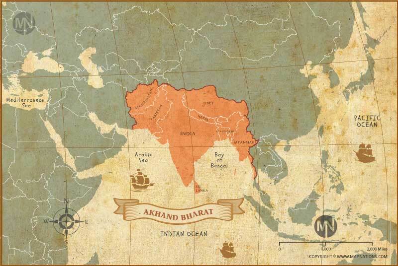 Akhand Bharat Map (Undivided India) 150Dpi