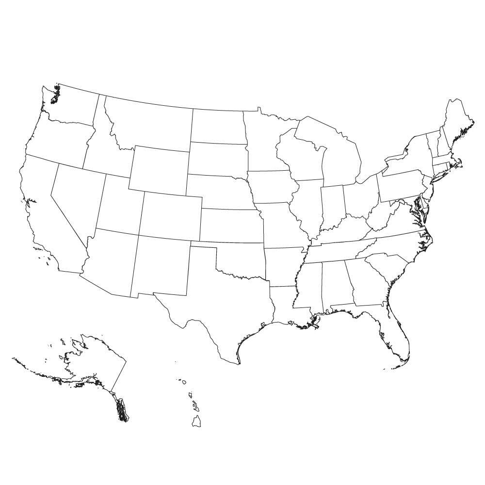 This is a blank map of the United States featuring clearly defined state boundaries. The map is designed for easy customization, making it ideal for educational use, labeling, or personal projects. The outline of each state is crisply delineated, providing a clear and simple visual representation of the U.S. without any additional markings or labels. Perfect for creating personalized maps or as a clean, straightforward visual reference.